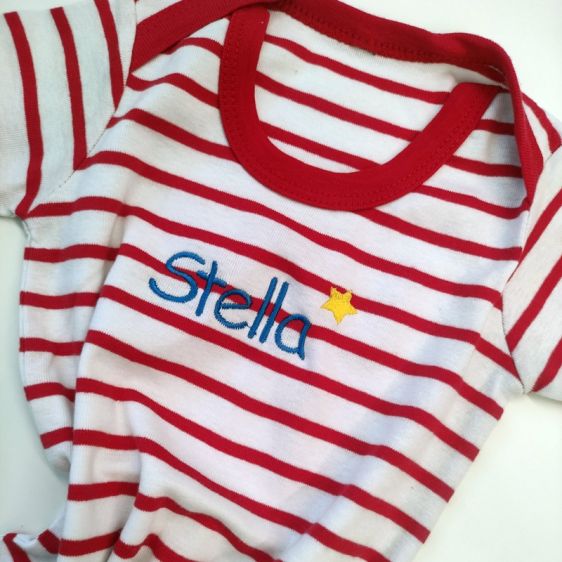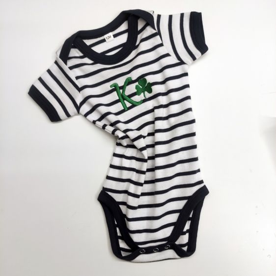 Φορμάκι μωρού ριγέ, 180g/m² – 100% Βαμβάκι Ringspun πενιέ, με ρέλι στο λαιμό, 1×1 ριπ λαιμόκοψη σε στυλ “φάκελος”, λεπτομέρειες σε χρωματική αντίθεση και κλείσιμο με τρουκ στον καβάλο. Άριστη ποιότητα βαμμένου νήματος και βαμβάκι σεμί-πενιέ. Ότι καλύτερο για μωρό σας. Διάλεξε όνομα ή μονόγραμμα και εμείς θα στο κεντήσoυμε και θα έχεις ένα μοναδικό customized δώρο.