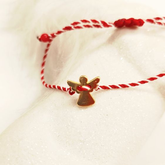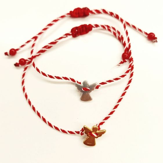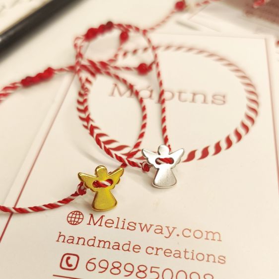 Μαρτάκι Angels ένα μεταλλικό στοιχείο χρυσό ή ασημένιο. Το κούμπωμα του είναι με αυξομείωση μακραμέ.