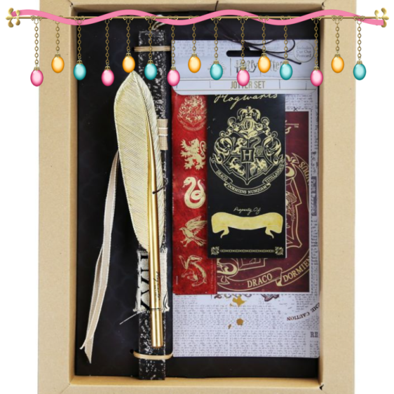 Πασχαλινή λαμπάδα διακοσμημένη με μια χρυσή πέννα σε σχήμα φτερού κατευθείαν από το Hogwarts, την διάσημη από τα βιβλία του Harry Potter σχολή μαγείας . Το σετ περιλαμβάνει εκτός από το απίθανο στυλό και μπλοκ σημειώσεων και αυτοκόλλητα. Σε δύο αποχρώσεις. Η λαμπάδα είναι αρωματική και είναι 30εκ.*2εκ*2εκ. Τοποθετημένη μέσα σε ένα υπέροχο χάρτινο οικολογικό κουτί, μεγέθους συσκευασίας: 25x6x35εκ. Στο πίσω μέρος το κουτί έχει εγκοπές για να το χρησιμοποιήσετε την ημέρα της Ανάστασης, ποτηράκι κεριού.