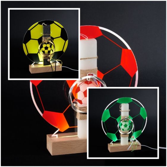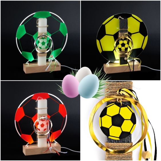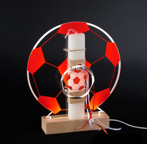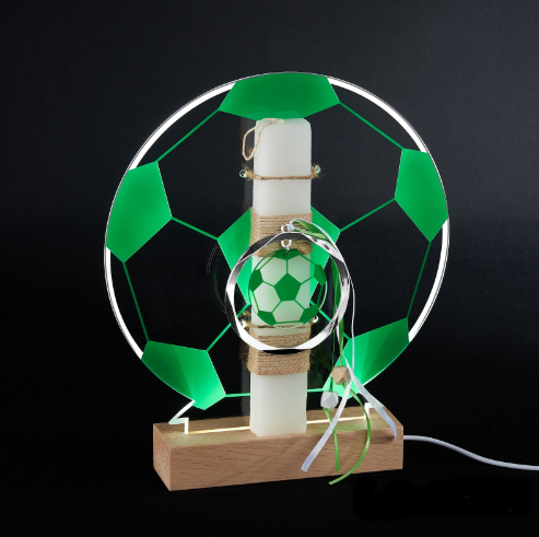Λαμπάδα μαζί με φωτιστικό LED. Κερί διακοσμημένο ανάλογα με την ομάδα σου. Και ένα υπέροχο φωτιστικό που συντροφεύει το παιδί στο δωμάτιο του όλο τον χρόνο. Το ύψος του κεριού είναι 20εκ, και το φωτιστικό έχει διαμέτρου 25εκ.