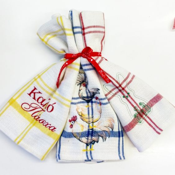 Τρεις Πασχαλινές πετσετούλες – ποτηρόπανα, διάστασης 45*65, βαμβάκι 100%. με κεντημένα τρία πασχαλινά σχέδια. Ένα υπέροχο Πασχαλινό δώρο.