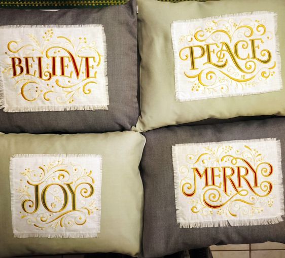 Διάλεξε ανάμεσα από τέσσερα υπέροχα μαξιλάρια. Merry, Joy, Believe και Peace. Σε δύο χρωματισμούς. Το Merry – Believe είναι γκρι και το Joy – Peace ανοιχτό πράσινο. Ένα πανέμορφό δώρο για όποιον αγαπάς.
