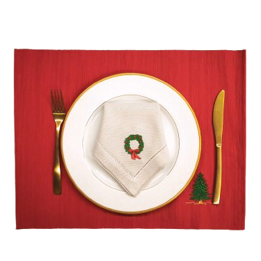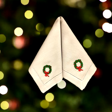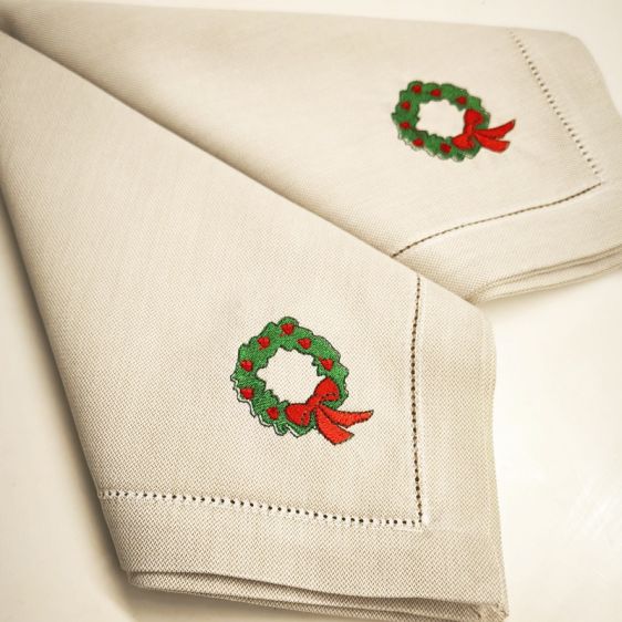 Σετ που αποτελείτε από δύο πετσέτες φαγητού, με κεντημένο ένα Χριστουγεννιάτικο στεφάνι. Για να ένα ξεχωριστό, μοναδικό και ιδιαίτερο δείπνο.