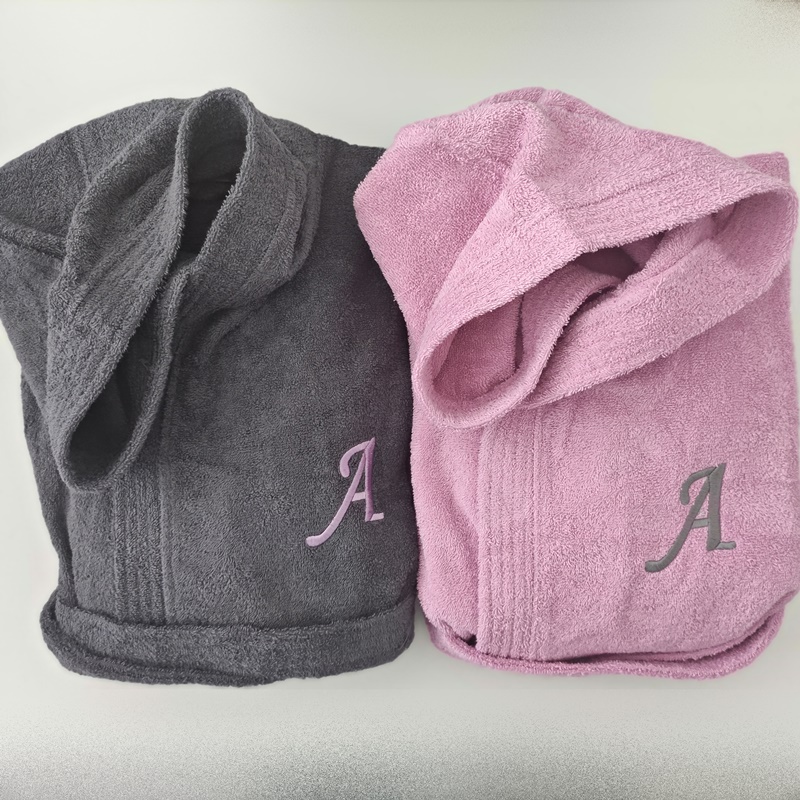 Εξαιρετικής ποιότητας βαμβάκι σε ένα customised μπουρνούζι με κουκούλα. Κέντημα στο στήθος (στην καρδιά) με το μονόγραμμα και στην πλάτη το όνομα ή ότι άλλο εσείς θέλετε. Γραμματοσειρά της επιλογής σου. Ακόμη μπορούμε να σας κεντήσουμε κάποιο από τα σχέδια μας. Στο πεδίο για το κέντημα θα γράψετε το νούμερο του κεντήματος που επιθυμείτε.