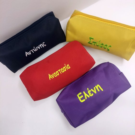 Κασετίνα συνθετική – αδιάβροχη, από ανθεκτικό ύφασμα για μικρά και μεγάλα παιδιά. Μικρού μεγέθους χωράει ότι τα μολύβια τους μαρκαδόρους και ότι άλλο θέλει να έχει μαζί του το παιδί, ακόμη μπορεί να είναι ένα πολύ ωραίο μοναδικό νεσεσέρ. Η διάσταση της είναι 7 x 17 x 4εκ. Επιλέξτε το χρώμα που θέλεις, το χρώμα του κεντήματος. Εμείς θα σου κεντήσουμε το όνομα ή το μονόγραμμα που επιθυμείς με ένα customised κέντημα!